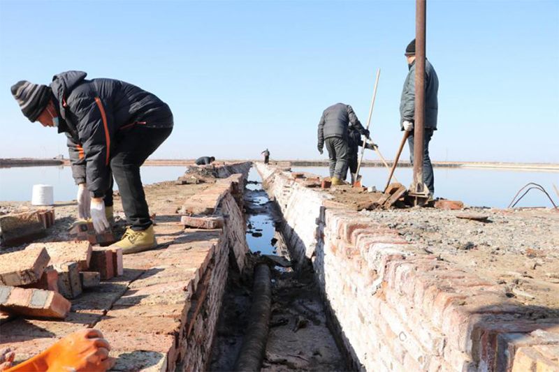 青鋒鹽業(yè)公司本著修一得一的原則,夯實生產(chǎn)基礎(chǔ),強化各項生產(chǎn)措施,積極開展了冬季修灘工作,投入機械設(shè)備共維修蒸發(fā)池、調(diào)節(jié)池2240公畝,技改趕鹵池640公畝,努力為提高產(chǎn)能打好基礎(chǔ)。