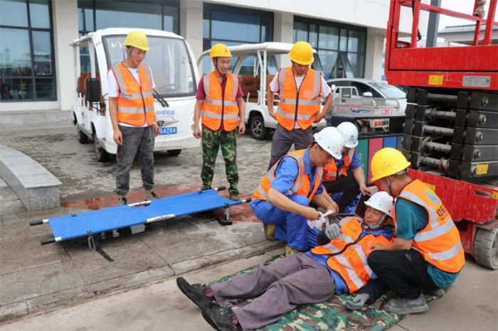 隨著警報(bào)響起,各部門迅速行動(dòng)。疏散組有條不紊地引導(dǎo)員工有序撤離危險(xiǎn)區(qū)域;搶險(xiǎn)組第一時(shí)間攜帶專業(yè)設(shè)備沖向“事故現(xiàn)場”,進(jìn)行滅火和搶險(xiǎn)作業(yè);醫(yī)療組則以最快速度對“受傷人員”進(jìn)行急救處理并轉(zhuǎn)運(yùn)。