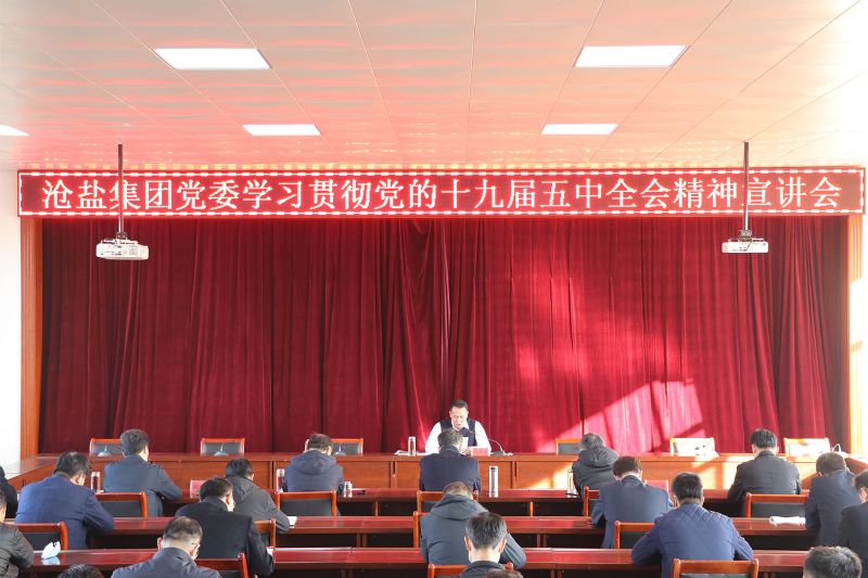 12月4日,滄鹽集團黨委學(xué)習(xí)貫徹黨的十九屆五中全會精神宣講會在公司二樓禮堂舉行。黨委書記、董事長劉建軍作宣講報告。