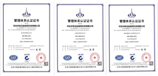 自去年投產(chǎn)以來,中鐵滄鹽科技創(chuàng)新喜報不斷,捷報頻傳,先后取得11項實用新型專利、3項發(fā)明專利、7項3A信用評價證書。繼2020年11月獲得河北省科學(xué)技術(shù)廳評選的河北省創(chuàng)新型中小企業(yè)的稱號后,通過積極的管理謀劃布局,2021年1月取得質(zhì)量體系、環(huán)境管理體系、職業(yè)健康三大體系ISO9001認(rèn)證;2021年8月通過了全國高新技術(shù)企業(yè)認(rèn)定管理工作領(lǐng)導(dǎo)小組評選,獲批河北省2021年第一批高新技術(shù)企業(yè)認(rèn)證。2021年9月,公司按照河北省工信廳被動式超低能耗建筑產(chǎn)業(yè)項目的文件要求,深度研究政策要求、全面匯總編寫課題資料,通過了工信廳第三方專家技術(shù)評審和外部財務(wù)審計等工作,被順利列入河北省工信廳被動式超低能耗建筑產(chǎn)業(yè)項目合格名單,納入政府資金滾動支持項目庫。