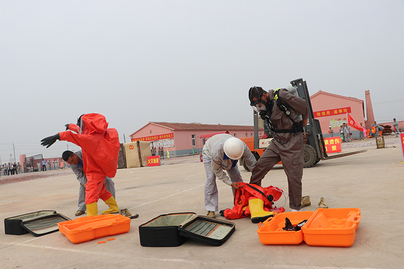 本次參加實(shí)戰(zhàn)演練的隊(duì)員40余人;顒幽M了機(jī)械傷害、中暑、觸電、火災(zāi)、溴素燙傷、氯氣泄露等6個事故場景。在應(yīng)急救援指揮部的統(tǒng)一指揮下和各應(yīng)急救援隊(duì)員的準(zhǔn)確處置下,人員得到了有效疏散,傷員得到了及時救助,事故得到有效控制,全面檢驗(yàn)了指揮調(diào)度效率和救援隊(duì)伍的應(yīng)急實(shí)戰(zhàn)水平,確保了遇到突發(fā)事件能“拉得出、攻得上、打得贏”。演練同時還進(jìn)行了消防技能、空呼機(jī)穿戴、防化服穿戴、空呼機(jī)穿戴30米跑等比武活動。