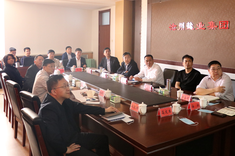 湖南鹽業(yè)雪天科技董事長陳新、湘恒鹽化副總經(jīng)理趙昌武,公司領導張立莊、文興峰、李金營、于劍參加了洽談。