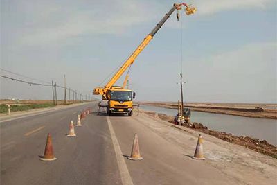 電力公司領導班子對恢復工程高度重視,因原路由被徹底毀壞,常規(guī)線路架設方式不適用恢復工程。在多方協(xié)調,確定了線路路由后,經(jīng)過多次現(xiàn)場勘查,集思廣益,反復研究,最終確定了施工方案,決定創(chuàng)造性地采用地樁連接固定的方式豎立電桿。5月13日,在完成前期測量、定位、材料設備等準備工作后,工程正式啟動。電力公司工程部職工按照施工方案,在多機械的配合下,克服環(huán)境惡劣、線路長等不利因素,于5月20日,完成了電桿豎立工作。