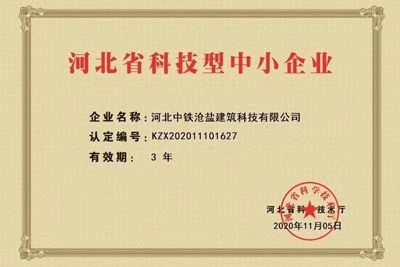 自去年投產(chǎn)以來,中鐵滄鹽科技創(chuàng)新喜報不斷,捷報頻傳,先后取得11項實用新型專利、3項發(fā)明專利、7項3A信用評價證書。繼2020年11月獲得河北省科學技術廳評選的河北省創(chuàng)新型中小企業(yè)的稱號后,通過積極的管理謀劃布局,2021年1月取得質量體系、環(huán)境管理體系、職業(yè)健康三大體系ISO9001認證;2021年8月通過了全國高新技術企業(yè)認定管理工作領導小組評選,獲批河北省2021年第一批高新技術企業(yè)認證。2021年9月,公司按照河北省工信廳被動式超低能耗建筑產(chǎn)業(yè)項目的文件要求,深度研究政策要求、全面匯總編寫課題資料,通過了工信廳第三方專家技術評審和外部財務審計等工作,被順利列入河北省工信廳被動式超低能耗建筑產(chǎn)業(yè)項目合格名單,納入政府資金滾動支持項目庫。
