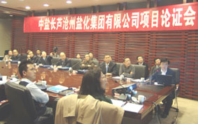 論證會由中鹽總公司、中鹽制鹽工程技術研究院、國家海洋局海水淡化與綜合利用研究所、中國石油和化學工業(yè)規(guī)劃院、天津科技大學、天津長蘆漢沽鹽場、天津海晶集團公司和中鹽紅四方股份有限公司等相關行業(yè)及企業(yè)的9名專家組成專家組,并推選中鹽制鹽工程技術研究院院長、教授級高工李樹生為專家組組長;同時邀請了河北省發(fā)改委、滄州市發(fā)改委、滄州渤海新區(qū)管委會、滄州渤海新區(qū)化工產(chǎn)業(yè)園區(qū)等地方政府領導,與發(fā)展規(guī)劃有關聯(lián)的滄東國華電廠、華潤電廠、滄州水利設計院、華北電力設計院等單位的領導參加了論證會。中鹽總公司和我公司相關領導出席了會議。
