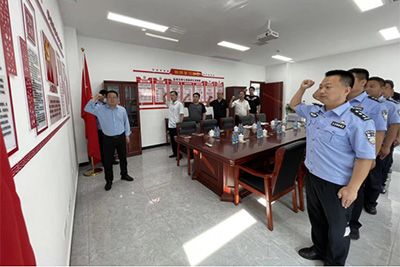 為慶祝中國共產(chǎn)黨建黨101周年,推進黨建工作開展,6月28日,滄州海防支隊臨港海防派出所全體黨員在所長常廣、教導(dǎo)員高洪昌的帶領(lǐng)下來到河北中鐵滄鹽建筑科技有限公司與中鐵滄鹽黨支部開展黨建聯(lián)建活動。