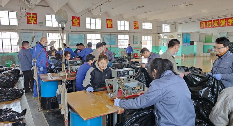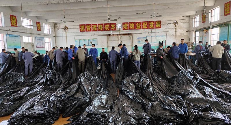 節(jié)日期間,工貿(mào)公司上下齊心協(xié)力,從班子、其他車間職工到工勤崗位全員出動(dòng),主動(dòng)放棄休息,在保證安全生產(chǎn)和完善疫情防控的要求下,加班生產(chǎn)。為了降低職工勞動(dòng)強(qiáng)度,技術(shù)研發(fā)部門通過多次改進(jìn),設(shè)計(jì)制造出了塑苫傳送裝置,大大節(jié)約了人力成本,提高了配送效率。