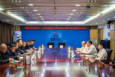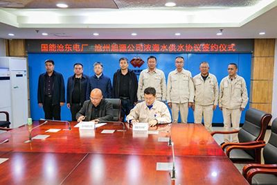 4月6日,黨委副書記、總經(jīng)理張立莊帶隊(duì)赴國(guó)能滄東電廠,與國(guó)能滄東電廠董事長(zhǎng)楊知社進(jìn)行合作會(huì)談,并成功簽署了濃海水供水協(xié)議。