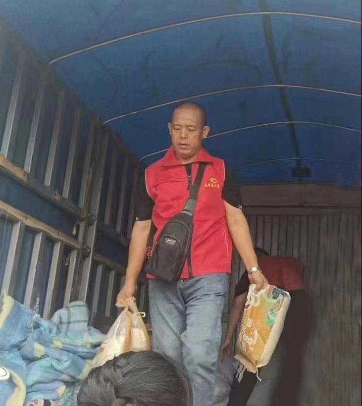 7月29日早晨5時,張元彬攜妻兒與所屬的渤海新區(qū)黃驊市港城區(qū)春暉志愿者團隊聯(lián)合渤海新區(qū)黃驊市紅色朝陽志愿者團隊,共計50余人驅車四百多公里前往保定淶源愛心互助家園,為當?shù)毓鹿牙先思皟和腿チ艘路、被子、鞋、米、油、書包、筆等生活、學習物資必需物品。這是張元彬全家第三次去淶源山區(qū)進行志愿服務。