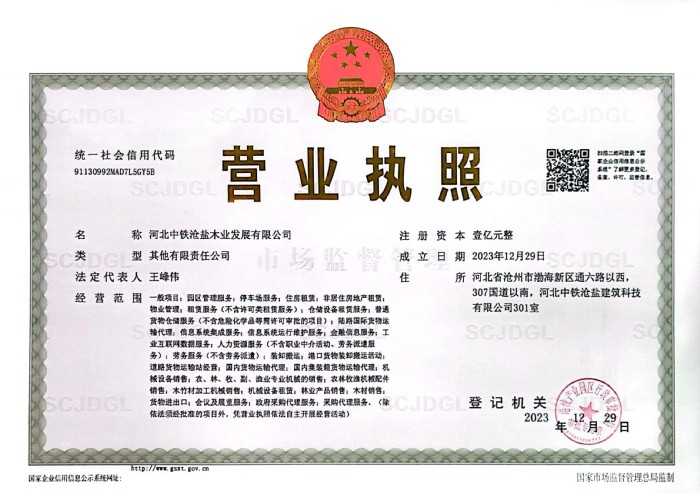 河北中鐵滄鹽木業(yè)發(fā)展有限公司注冊成立