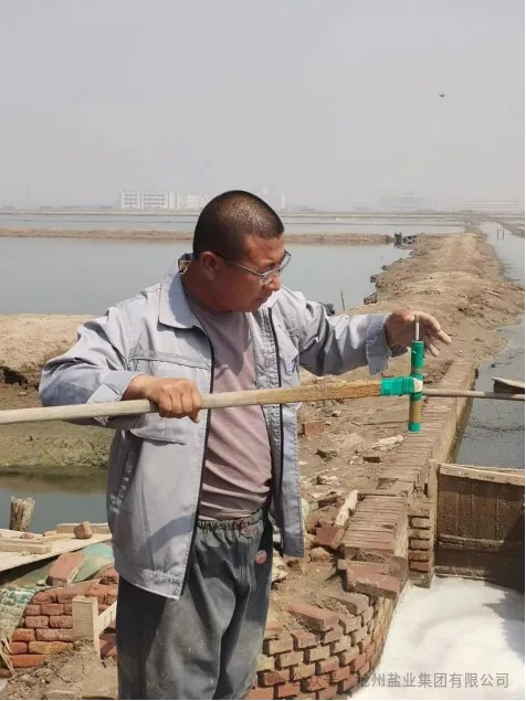 陳國輝在鹵水趕制方面經(jīng)驗(yàn)豐富、技術(shù)過硬,特別是對天氣處理,鹵水調(diào)節(jié)都能做到合理安排,科學(xué)規(guī)劃。他能結(jié)合天氣的變化,靈活調(diào)配,鹵水在他的排步下,進(jìn)灘頭、越溝壕、鉆保鹵圈,經(jīng)過漫長的蒸發(fā)過程,最終達(dá)到溴素生產(chǎn)需要的標(biāo)準(zhǔn)范圍。優(yōu)質(zhì)“鹵水”的獲得離不開陳國輝與班組成員一手拿鐵鍬、一手拿“度表”,從黎明到傍晚,從嚴(yán)寒到酷暑,日復(fù)一日的轉(zhuǎn)灘、修閘、晾曬及處理天氣、排淡保鹵,他孜孜以求揮灑著勤勞的汗水,只為把600多畝水面合理調(diào)配做到“保鹵、趕鹵”。