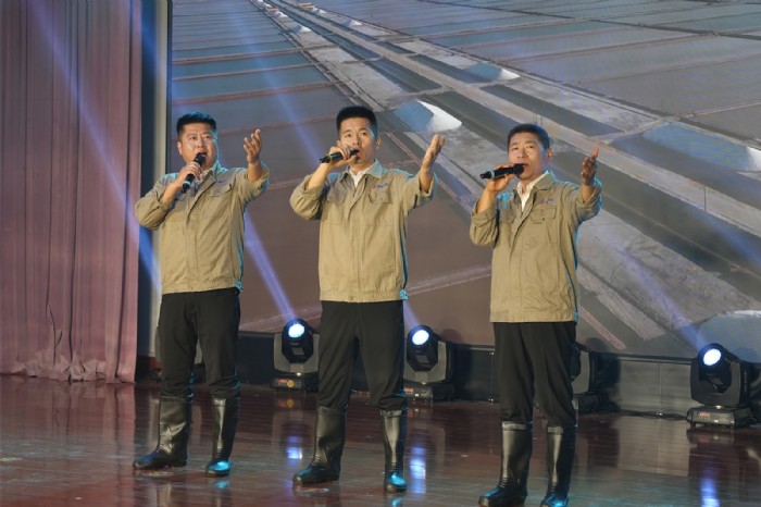 聯(lián)歡會(huì)在黃驊市紅色朝陽(yáng)戰(zhàn)鼓隊(duì)演奏的鼓舞《紅紅火火》中拉開(kāi)序幕,迅速點(diǎn)燃現(xiàn)場(chǎng)氣氛。隨后的獨(dú)唱《等待》、情景劇《穿越時(shí)空的對(duì)話(huà)》、薩克斯表演《鐵血丹心》、舞蹈《萬(wàn)疆》、手語(yǔ)舞《一起走》、講述性朗誦《履職盡責(zé),做新時(shí)代的應(yīng)急奮斗者》、戲曲聯(lián)唱等20個(gè)節(jié)目輪番上演。其中男聲小合唱《曬鹽的漢子》書(shū)寫(xiě)著一代代滿(mǎn)腔熱血的滄鹽人在這片百里荒灘上艱苦奮斗、開(kāi)拓創(chuàng)新的偉大精神,瞬間將活動(dòng)的氣氛推向高潮;詼諧幽默的三句半《滄鹽新風(fēng)尚有你還有我》展現(xiàn)了滄鹽職工的榮譽(yù)感和自豪感,以及對(duì)企業(yè)美好未來(lái)的期許與祝福;一曲《長(zhǎng)蘆戀》迅速將人們拉進(jìn)30多年前鹽工生產(chǎn)生活的回憶里;滄鹽集團(tuán)三位國(guó)家級(jí)、省級(jí)、市級(jí)勞動(dòng)模范合唱的《歌唱祖國(guó)》更是以飽滿(mǎn)的熱情唱出了對(duì)祖國(guó)的熱愛(ài);實(shí)力唱將楊嵐雅、袁冰,滄州星月藝術(shù)團(tuán)的精彩表演更是博得了現(xiàn)場(chǎng)觀眾的陣陣掌聲。最后,演出在一首充滿(mǎn)陽(yáng)光和希望的歌伴舞《陽(yáng)光路上》落下帷幕。