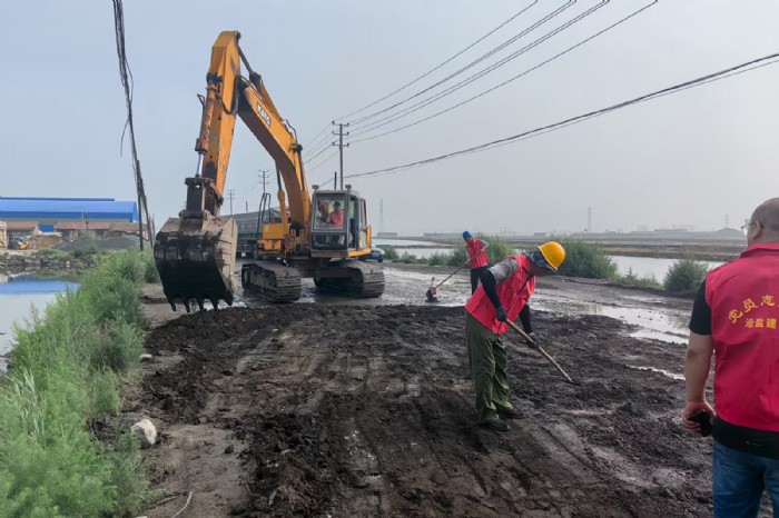 連日來,強降雨持續(xù)不斷,為道路鋪設(shè)帶來很大的困難, 施工負(fù)責(zé)人現(xiàn)場指揮督導(dǎo),職工們一邊下管排水一邊鋪設(shè)道 路,將“工期意識 ”、“責(zé)任意識 ”融入每一個施工細(xì)節(jié), 在保證工程質(zhì)量和施工安全的前提下,全力以赴加快臨道鋪 設(shè)速度。