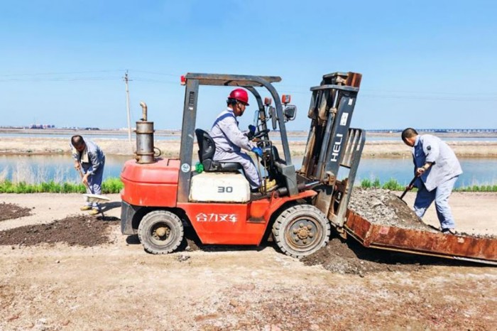 長蘆公司制鹵二工區(qū)第六泵站通往溴素有限公司溴素三廠的路段因強(qiáng)降雨沖刷,路面坑洼遍布、積水橫流,車輛、人員顛簸難行,既給職工上下班及原料運(yùn)輸帶來極大不便,也埋下了安全隱患。群眾所盼,行動所向。7月18日,溴素三廠10余名黨員干部及骨干組建了突擊隊(duì),備齊鐵鍬、砂石料、叉車等工具設(shè)備,對該路段進(jìn)了修補(bǔ)。