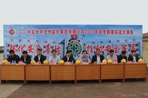 為加強對安全生產(chǎn)事故的防范,提高應(yīng)對突發(fā)安全生產(chǎn)事故的處置能力,6月18日,公司在溴素一廠舉行應(yīng)急救援實戰(zhàn)大演練。公司安委會成員、搶險突擊隊員及各單位黨政負(fù)責(zé)人、安全生產(chǎn)負(fù)責(zé)同志、安全員和各職能部室負(fù)責(zé)人等150多人現(xiàn)場進行了觀摩演練。黃驊市副市長賈兆德、黃驊市安監(jiān)局局長孫進也應(yīng)邀進行了現(xiàn)場觀摩。