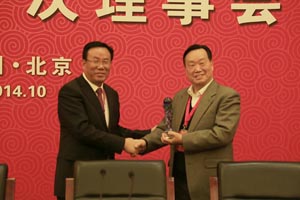 中鹽協(xié)會理事長茆慶國為董志華同志頒發(fā)中國鹽業(yè)卓越成就紀念品