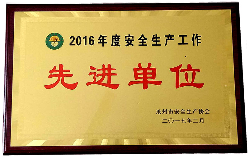 日前,公司被滄州市安全生產協會評為“2016年度安全生產工作先進單位”。