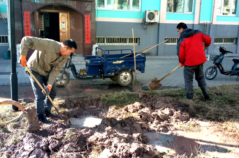3月9日,滄鹽新區(qū)7號(hào)樓前地暖管線發(fā)生破裂。發(fā)現(xiàn)這一情況后,新區(qū)黨支部迅速組織職工及時(shí)進(jìn)行維修。他們克服了人員少、工作量大等困難,奮戰(zhàn)一天終于在晚上九點(diǎn)把管線維修好,重新恢復(fù)了轄區(qū)的正常供暖。
