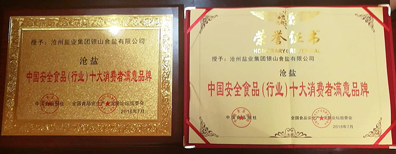 7月28日,在《中國食品報》和中國食品安全產(chǎn)品產(chǎn)業(yè)發(fā)展論壇組委會共同舉辦的“2018中國食品安全產(chǎn)業(yè)發(fā)展論壇暨放心食品品牌推廣活動”全國評選大會上,滄州鹽業(yè)集團(tuán)有限公司和滄鹽集團(tuán)銀山食鹽有限公司生產(chǎn)的“滄鹽”牌食用鹽分別獲得“2018中國安全食品品牌50強(qiáng)”、“2018中國安全食品(行業(yè))十大消費(fèi)者滿意品牌”殊榮。這是“滄鹽”牌食鹽又一次獲得全國性大獎。