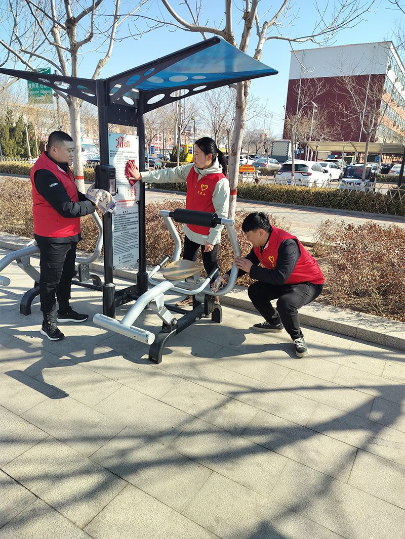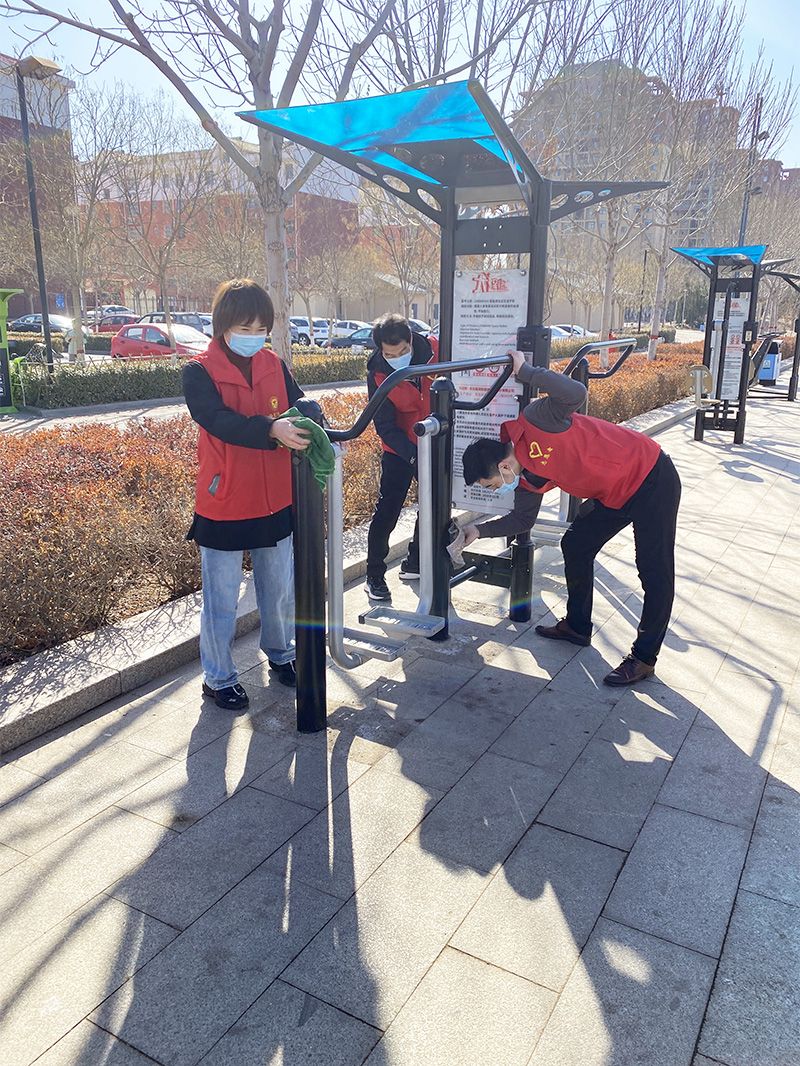 活動(dòng)中,團(tuán)員青年發(fā)揚(yáng)不怕苦、不怕累的光榮傳統(tǒng),對(duì)廣場(chǎng)的健身器械全面擦拭、對(duì)花壇、綠化帶、人行道的垃圾、煙頭全面清理,不放過一個(gè)死角。